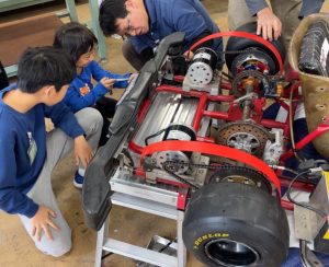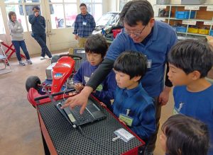 また、ボルトやナットなどのパーツや機械工具にも触れて、物づくりの面白さを体験したり、コンピューターのプログラミングによりモーターの性能を調整するところを実際に見ることで、電気で走る未来の車を身近に感じてもらえます。